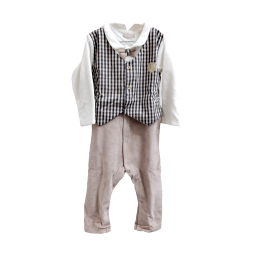 Hinta 24,24 €Pehmeä veluuripuku pojalle. Valkoinen yläosa liivillä, selkämys täysin valkoinen. Harmaa alaosa. Nepparikiinnitys.